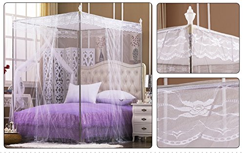 royal-ヨーロピアンスタイルスクエアトップMosquito Net three-door暗号化ThickeningシングルダブルベッドステンレススチールブラケットJadeカラーホワイト 1.8*2.2m bed