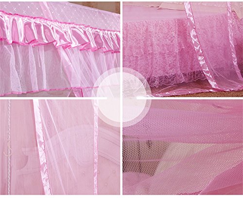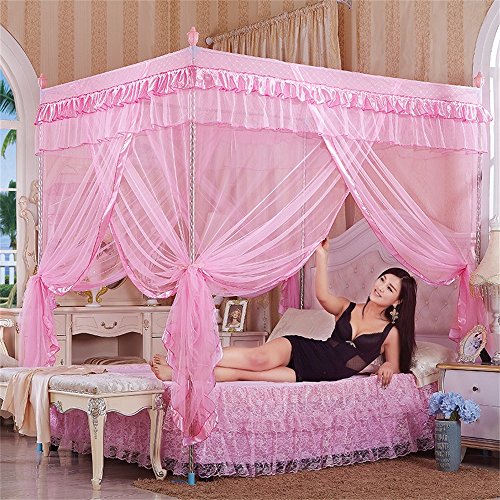 royal-ヨーロピアンスタイルスクエアトップMosquito Net three-door暗号化Thickeningシングルダブルベッドステンレススチールブラケットピンク 2.0m (6.6 feet) bed
