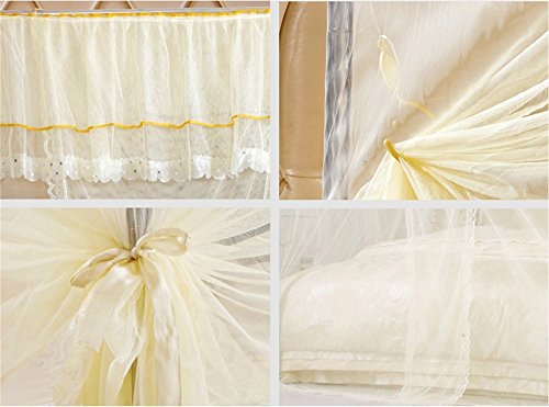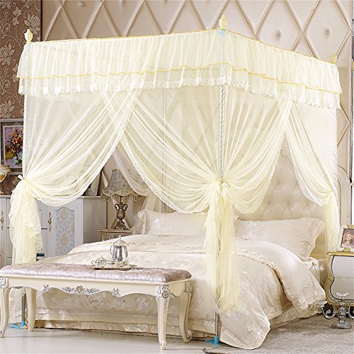 royal-ヨーロピアンスタイルスクエアトップMosquito Net three-door暗号化Thickeningシングルダブルベッドステンレススチールブラケットベージュ 2.0m (6.6 feet) bed