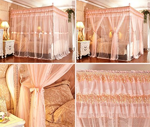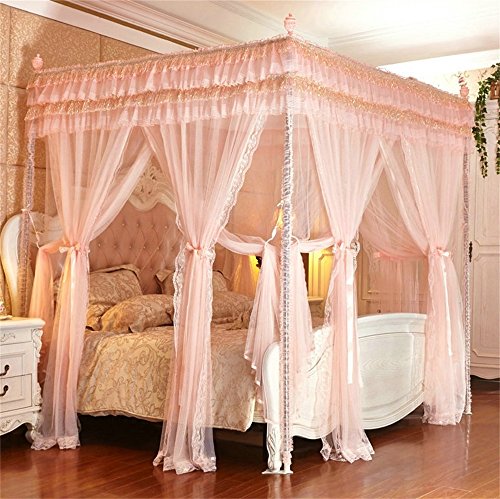 royal-ヨーロピアンスタイルSquare Top Double Layer Mosquito Net three-door暗号化Thickeningダブルベッドプリンセススタイルステンレススチールブラケット 1.8*2.2m Bed