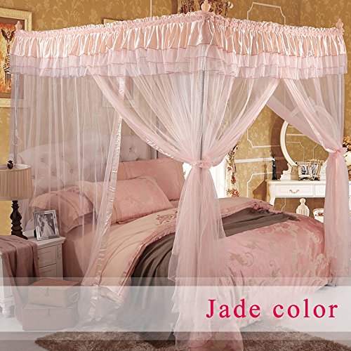 royal-ヨーロピアンスタイルスクエアトップMosquito Net three-door暗号化Thickeningシングルダブルベッドアルミニウム合金ブラケット翡翠色 1.2m (4 feet) bed