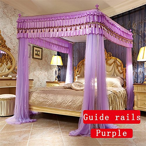 royal-ヨーロピアンスタイルfour-posterレールMosquito Net three-door Singleダブル暗号化Thickeningプリンセススタイルステンレススチールブラケット 1.2m (4 Feet) Bed パープル