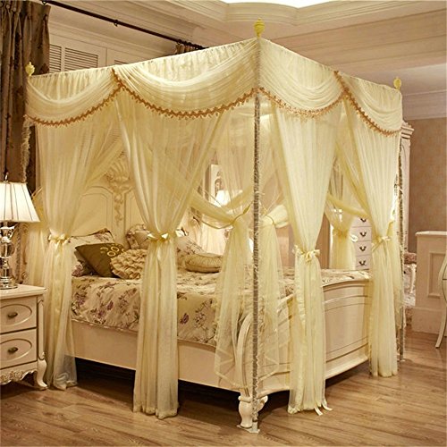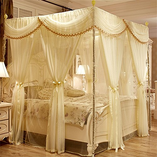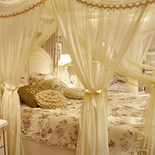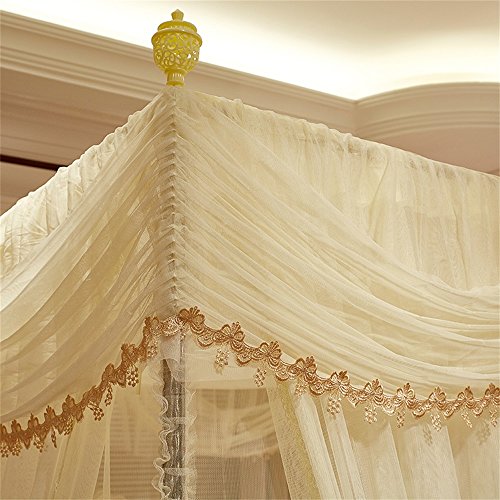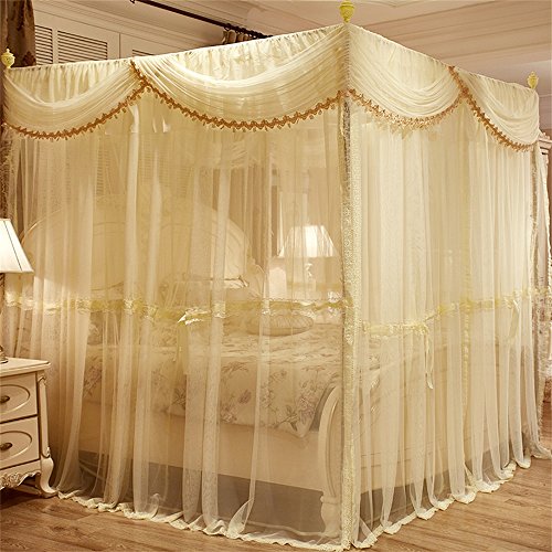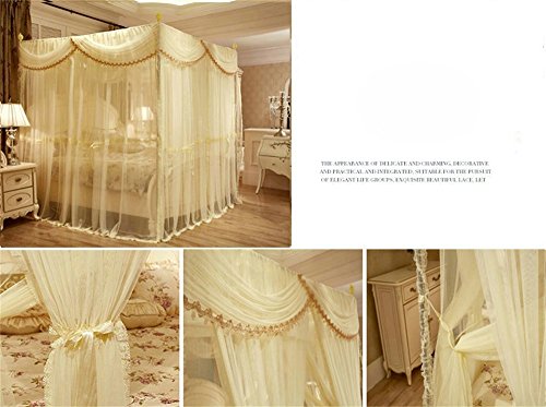 royal-ヨーロピアンスタイルSquare Top Double Layer Mosquito Net three-door暗号化Thickeningダブルベッドプリンセススタイルステンレススチールブラケット 2.0m (6.6 Feet) Bed ベージュ