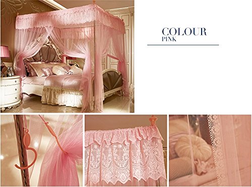 royal-ヨーロピアンスタイルスクエアトップMosquito Net three-door暗号化ダブルベッドプリンセススタイルステンレススチールブラケットピンク Diameter 25mm