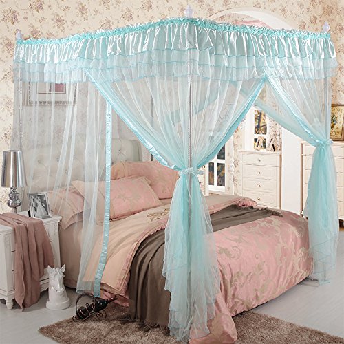 royal-ヨーロピアンスタイルスクエアトップMosquito Net three-door暗号化Thickeningシングルダブルベッドステンレススチールブラケットブルー 1.5m (5 feet) bed