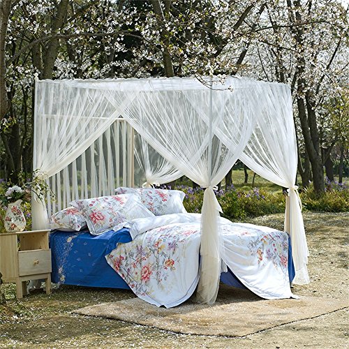 royal-ヨーロピアンスタイルスクエアトップMosquito Net three-door暗号化Thickeningホームダブルベッドプリンセススタイルステンレススチールブラケットベージュ 2.0m (6.6 feet) bed