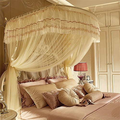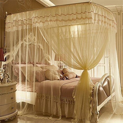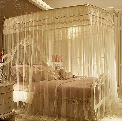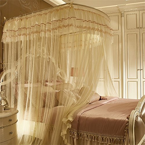 royal- U型レール釣りロッドTelescopic Mosquito Net three-door Singleダブル暗号化Thickeningステンレススチールブラケットベージュ Diameter 25mm