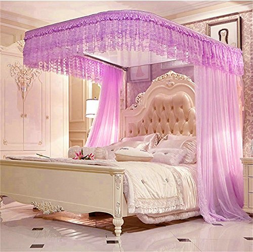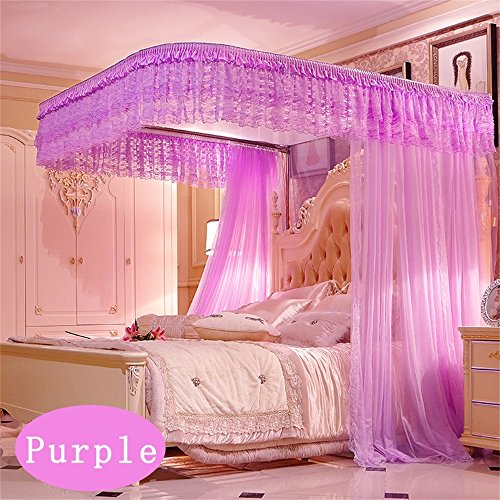 royal- U型プルロープレール釣りロッドTelescopic Mosquito Net three-door Singleダブル暗号化Thickeningステンレススチールブラケット 1.5m (5 Feet) Bed パープル