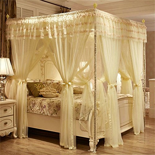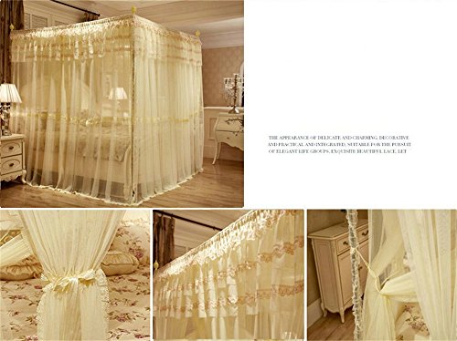 royal-ヨーロピアンスタイルSquare Top Double Layer Mosquito Net three-door暗号化Thickeningダブルベッドプリンセススタイルステンレススチールブラケット 1.8m (6 Feet) Bed ベージュ