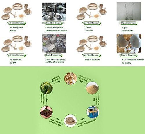 - ほとんどのプラスチックやメラミン製品と同様に、潜在的にあなたの食べ物の中に、その結果、化学物質を排出することにより、健康上のリスクをもたらす可能性があります。このセットは、任意の化学物質を添加することなく、100%天然の籾殻有機繊維で作られています。