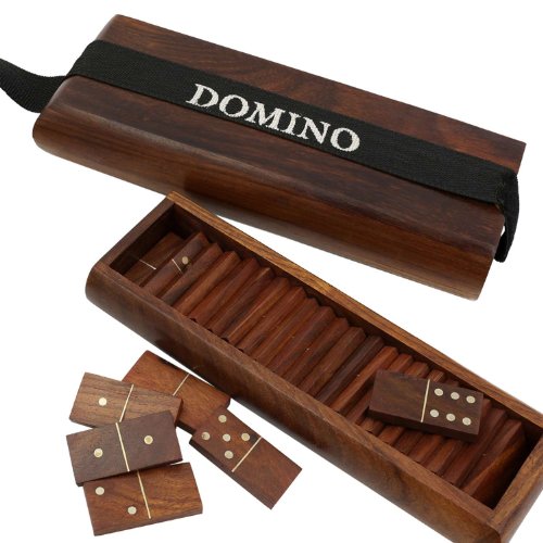 Set of 8 - Indian Wooden Domino Tile Game Tray - Complete Game Set - Travel Domino Set Double - 7" x 3" x 1.5"