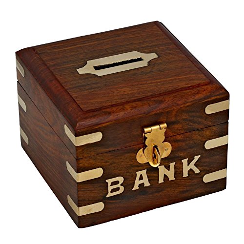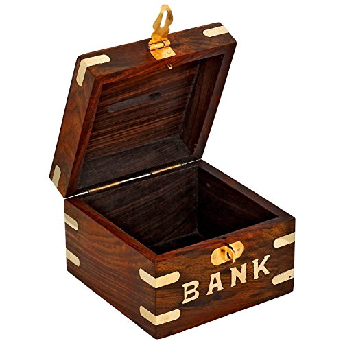 Treasure Chest貯金箱木製セーフマネーボックス削減Banks子供&大人、4インチ