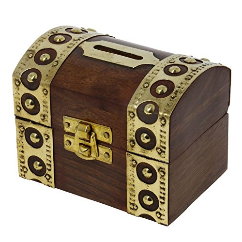 クリスマスプレゼント安全お金ボックス木製貯金箱トレジャーChest for Boys Girls &大人、2のセット