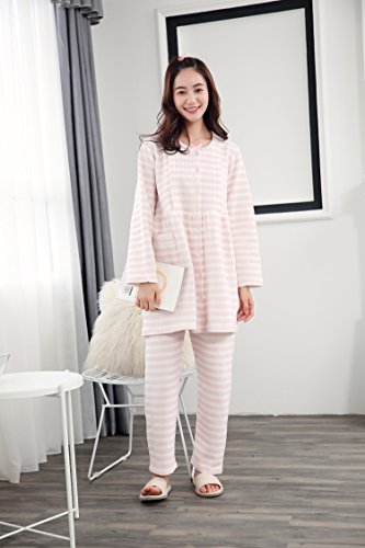 Royanney パジャマ レディース ルームウェア マタニティ 綿 オーガニック コットン100 長袖 冬 前開き 出産パジャマ 産後パジャマ 寝間着 上下セット あったか 長い丈