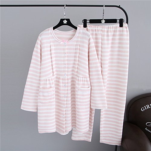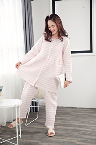 - かわいいストタップ柄、嬉しい長い丈のデザイン、ブルーとピンク2色選べる。ウェスト部分はゴム取替口付き。便利な前開きのルームウェア、授乳機能付き、マタニティにもおすすめ。