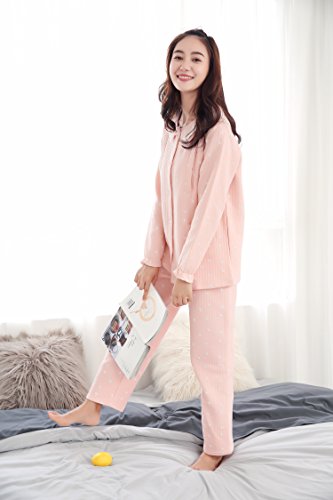 Royanney パジャマ レディース ルームウェア マタニティ 綿 オーガニック コットン100 長袖 冬 前開き 出産パジャマ 産後パジャマ 寝間着 上下セット あったか リボン