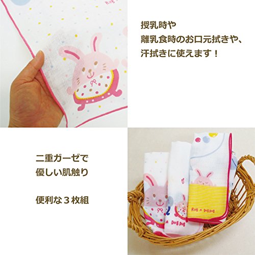 Rub a dub dub(ラブアダブダブ) R.ベビー3枚組ガーゼハンカチ ピンク