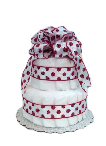 - New Baby Girl Diaper Cake - Ladybug Red and White - Great Baby Shower Gift Idea or Table Centerpiece (2 Tier)