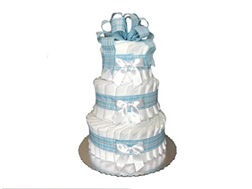 - Classic Pastel Baby Shower Diaper Cake (3 Tier, Blue)