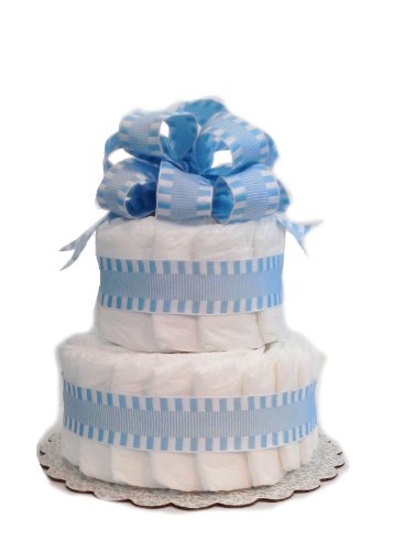 - Classic Pastel Baby Shower Diaper Cake (2 Tier, Blue)