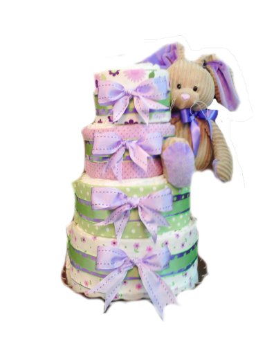 Lavender Love - Bunny Rabbit Baby Shower Diaper Cake Gift Set - 4 Tier by Rubber Ducky