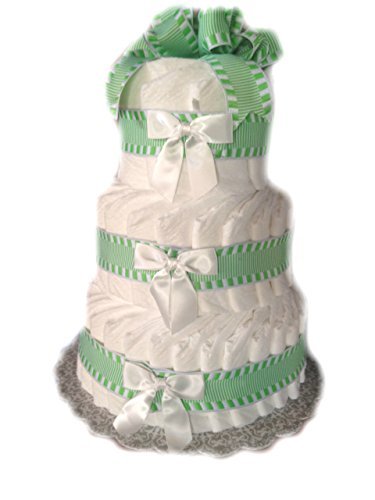 Classic Pastel Baby Shower Diaper Cake (3 Tier, Green) by Rubber Ducky