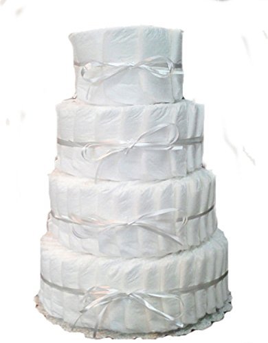 4 Tier Baby Diaper Cake;100 Stage 1 Pampers Swaddlers for babies 8-14 lbs.;All Diapers are Ready to Use;Sturdy and ready to be decorated;Packaged in tulle with gift enclosure card
