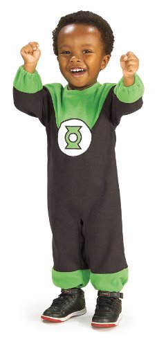 - No evil shall escape the light of this little guy. The Green Lantern costume includes: a green and black romper with easy on/off underleg snap closure. This costume is based on the character from the popular animated TV series Justice League. Available