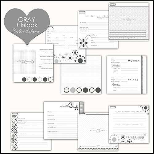 Document The Milestones & Memories of Your Little One's First Year!;52 Beautifully Designed & Detailed Pages Including Pregnancy, Baby Shower, Family Tree, Growth Chart, Milestones, First Birthday and More!;High-Quality Handmade Black Fabric Cover and a Coordinating Gray + Black Page Color Scheme;Leave Mommy-To-Be Gushing Over This Stylish & Thoughtful Shower or Hospital Gift;Comes With a Calendar with Sticker Milestones
