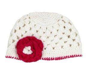 ラッフルバッツ クロシェ付きコットンニット帽子 ホワイト Ava Marie 6-12M