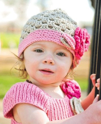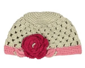 ラッフルバッツ クロシェ付きコットンニット帽子 ベージュ Ella Grace 12-24M