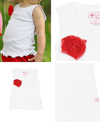 ラッフルバッツ レッドフラワー付きホワイトタンクトップ トップス 3T レッドフラワー