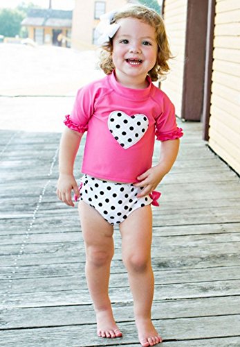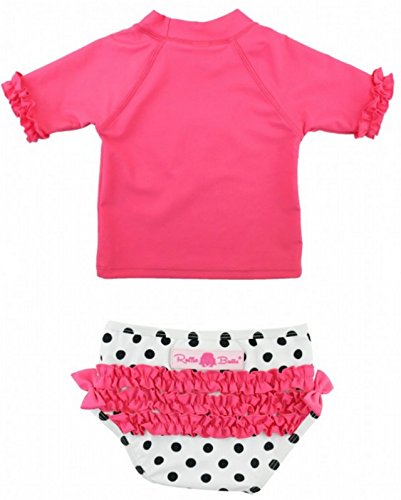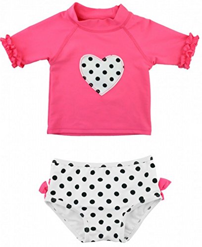 RuffleButts ラッフルバッツ 水着 ラッシュガード ビキニ UPF 50+ Candy Polka Heart / Mint Polka Star (6-12m(70cm), Candy Polka Heart(ピンク))