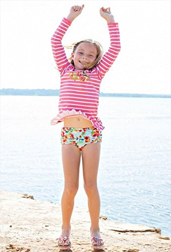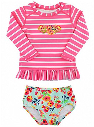 RuffleButts ラッフルバッツ 長袖ラッシュガード 水着 上下セット フラワーストライプ (18-24m(80cm)) [並行輸入品]