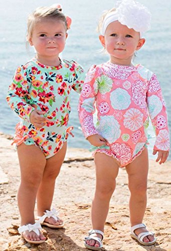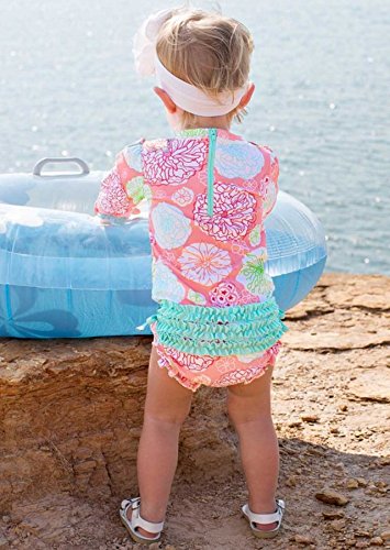 RuffleButts ラッフルバッツ 水着 長袖ラッシュガード トロピカルガーデンワンピース (2T(90cm)) [並行輸入品]