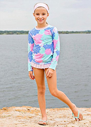 RuffleButts ラッフルバッツ 長袖ラッシュガード 水着上下セット パステルペタル (3T) [並行輸入品]