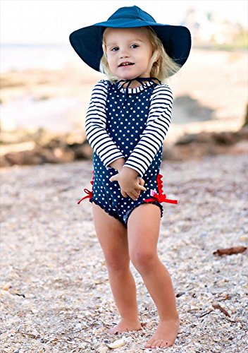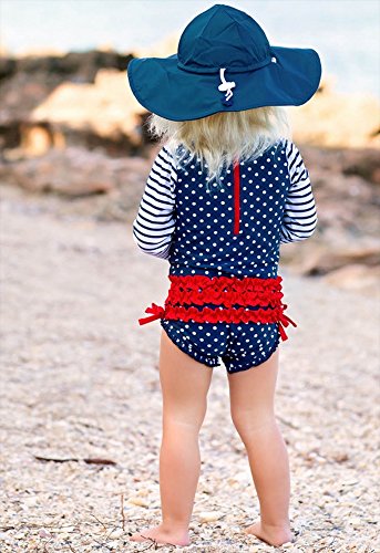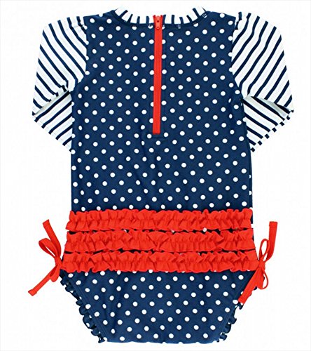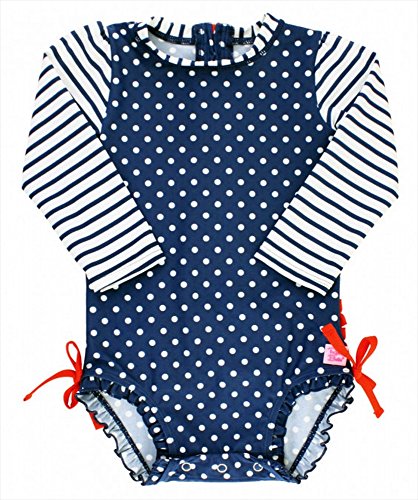 RuffleButts ラッフルバッツ 長袖ラッシュガード ワンピース水着 (ネイビーポルカドット, 18-24m) [並行輸入品]