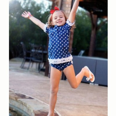 RuffleButts ラッフルバッツ UPF50+ ラッシュガード Nautical Navy Ruffled Rash Guard Bikini (1...