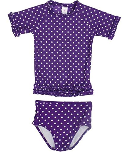RuffleButts ラッフルバッツ UPF50+ ラッシュガード Grape Polka Dot Ruffled Rash Guard Bikini (18-24m(80), Grape(グレープ)) [並行輸入品]