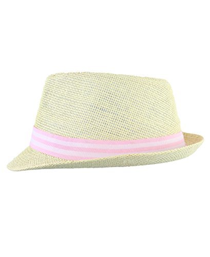 RuffleButts Infant / Toddler Girls Straw Fedora w /ピンクリボン カラー: ホワイト