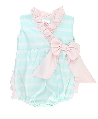 RuffleButts乳児/幼児用ガールズサテン地ストライプバブルWrap Romper W / Bow カラー: ブルー