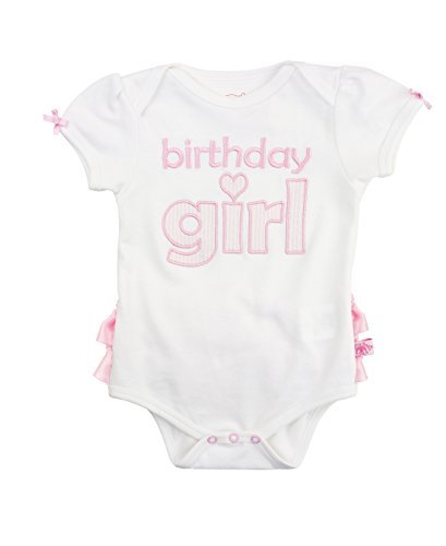 RuffleButts乳児/幼児用女の子ピンクSeersucker Birthday Girlボディスーツ US サイズ: XS カラー: ホワイト