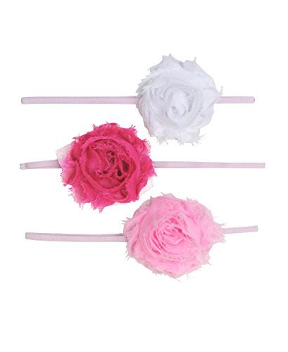 RuffleButts乳児/幼児用女の子ヘッドバンド – ピンク、ホワイト、フクシアRawロゼット花セット US サイズ: S カラー: ピンク