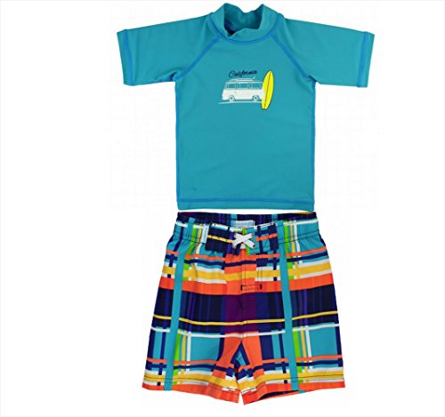 RuggedButts ラゲッドバッツ ブルーカリフォルニアラッシュガード 男の子 水着 上下セット (4T(100cm))