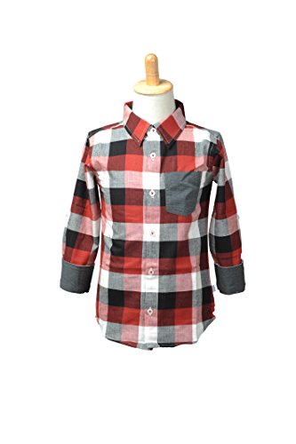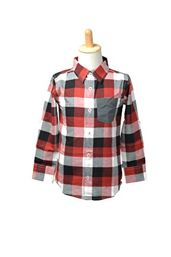 ラゲッドバッツ RuggedButts シャツ チェック 前あき ボタン 男の子 USA RuffleButtsの弟ブランド (レッド&ブラック&ホワイト, 5) [並行輸入品]