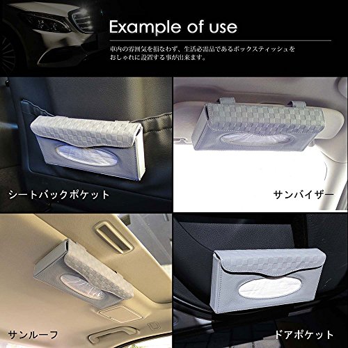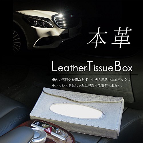 商品説明 牛本革を贅沢に使用した、高級感が漂う車内用ティッシュカバーです。 シンプルでありながら、蓋のチェッカ―パターンがアクセントになった スタイリッシュなデザイン。 車内の雰囲気を損なわず、生活必需品であるボックスティッシュをおしゃれに設置する事が出来ます。 挟むだけで簡単にサンバイザーへ取り付ける事が出来て、ワンタッチボタンで中身の交換も楽に行える 機能的にも優秀なアイテムです。 ブラック、グレー、ベージュと、内装に合わせやすい3色の定番カラーをご用意しました。 イメージに合わせてお選びください。