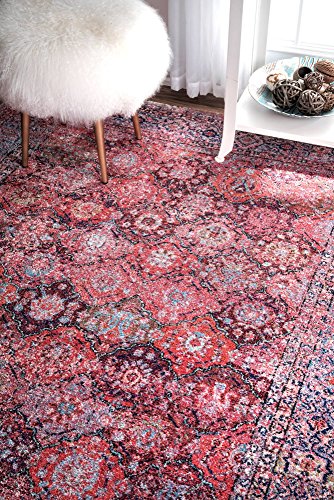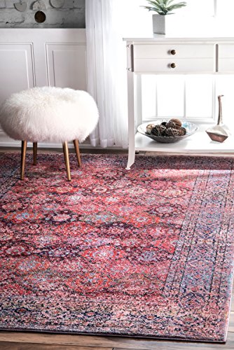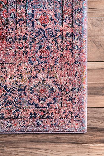 従来Faded花柄透かし彫りTrellis Rug 2' x 8' ピンク