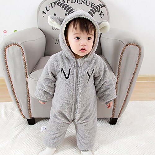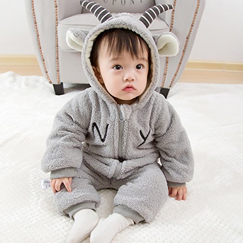 - しかの角模様のカバーオールはすごくかわいい。柔らかいベビーの着ぐるみ。