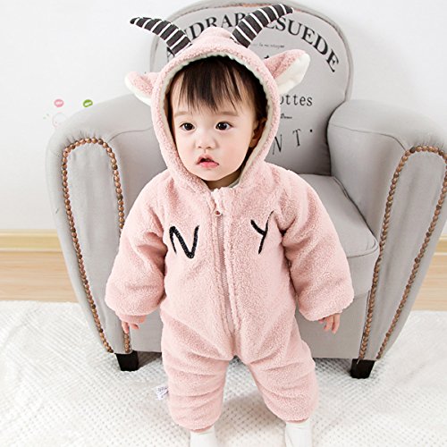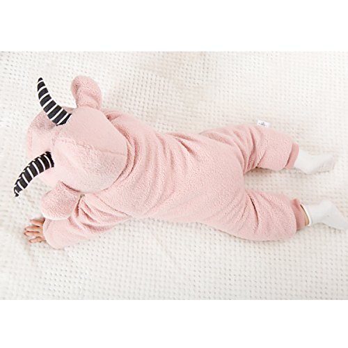 Ruibaolai 柔らかい ベビー キッズ用 ファション カバーオール ロンパース 着ぐるみ キッズコスチューム 子供 男の子 女の子 出産 祝い パジャマ 防寒着 スウェット ベビー服 パーティー 文化祭 学園祭 新年会 誕生日会 歓迎会 (66cm, ピンク)