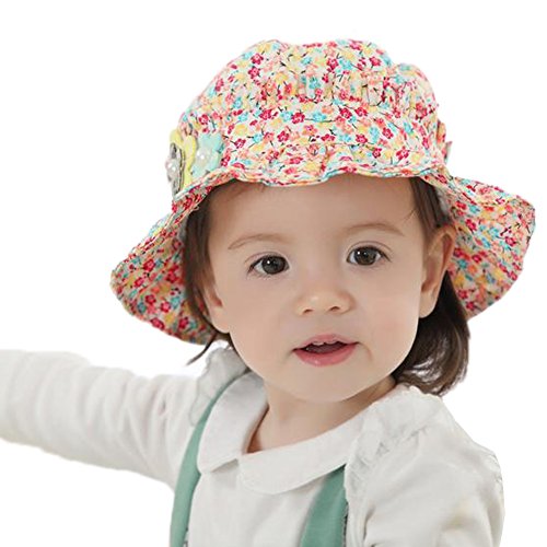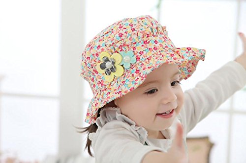 Ruideng 春夏の新子供の花は、ビーチ帽子赤ちゃん日帽子キャップ (Hot Pink)